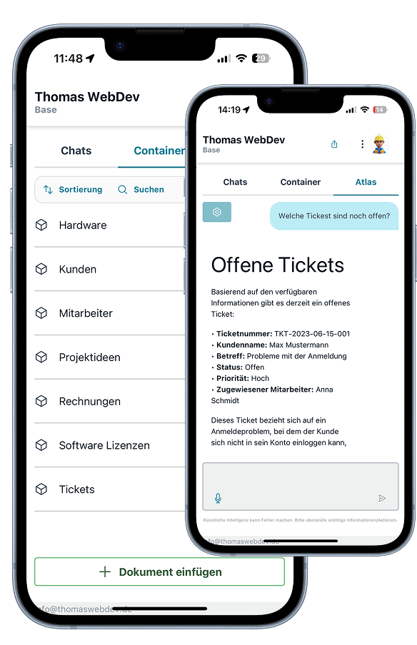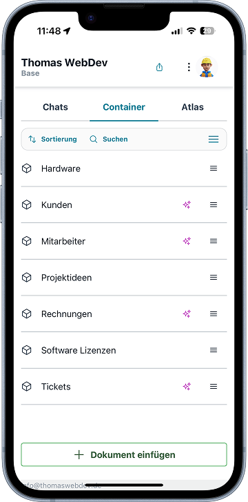 Verwalte und teile Daten sicher in der Cloud. Optional kann ein KI-Agent dein Wissen wie eine Person einsetzen und damit arbeiten.