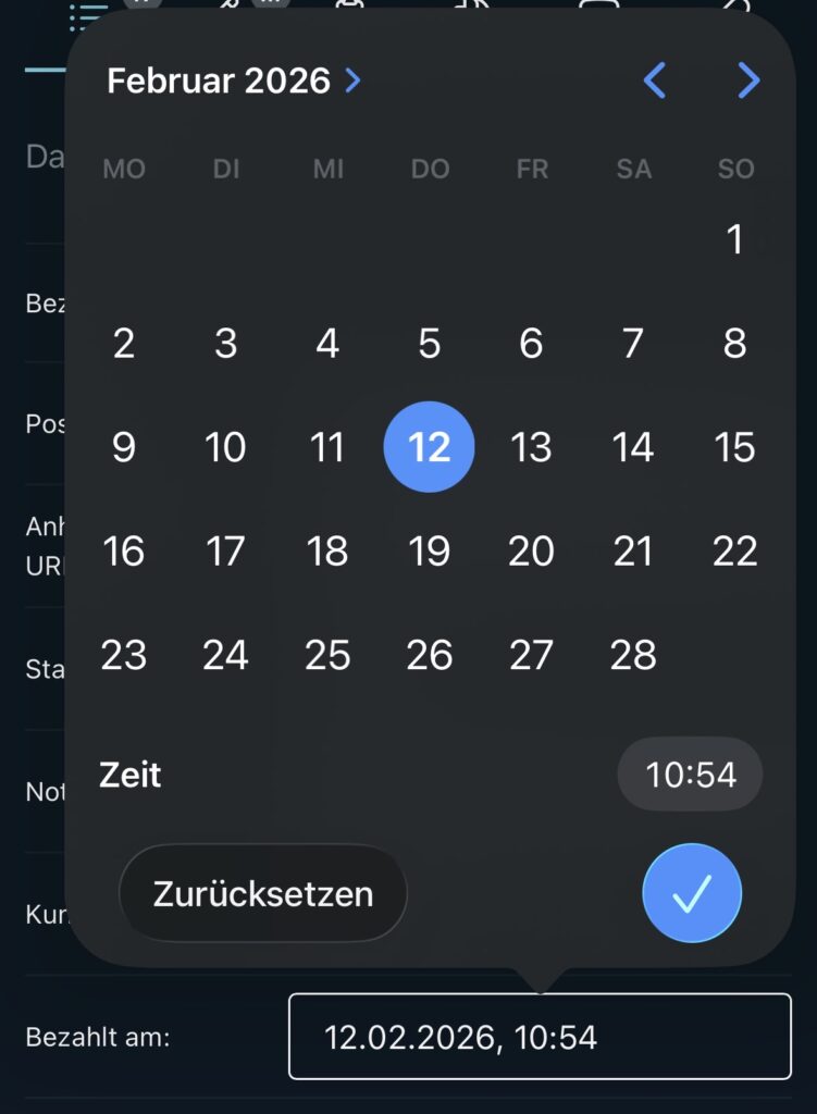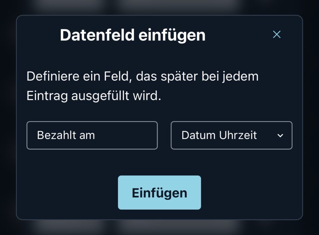 Zum Beispiel könnte ein Rechnungs-Container ein Feld “Bezahlt am” mit dem Typ “Datum und Uhrzeit” haben, welches angibt wann eine Rechnung bezahlt wurde.